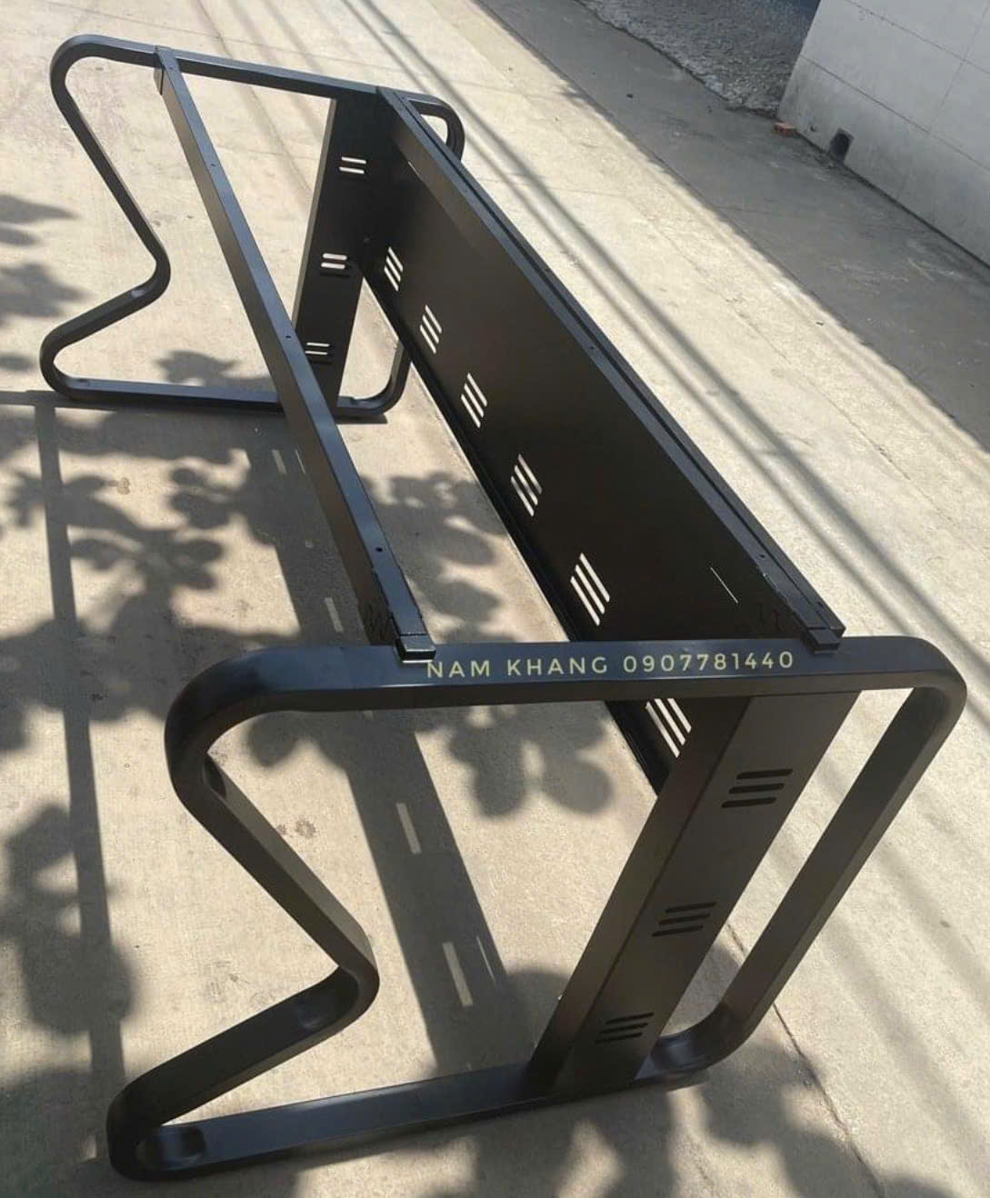 Chất liệu : Chân bàn thép hộp 25x50 uốn cong, cây nối 25x50