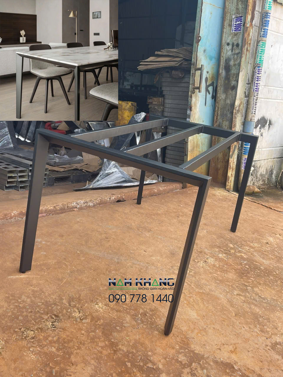 Chất liệu : Chân bàn thép tấm dày 2 ly tạo hình,bệ đỡ thép hộp 25x50 dày 1,2 ly