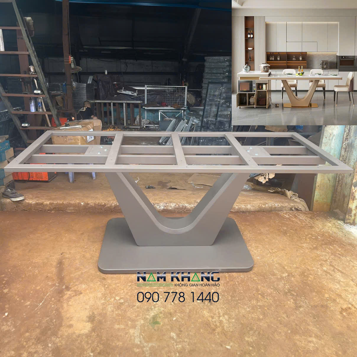 Chất liệu : chân bàn thép tấm 2 ly tạo hình , bệ đỡ sắt hộp 25x50 dày 1,2 ly
