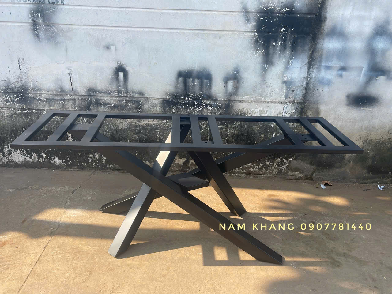 Chất liệu : chân bàn thép hộp 75x75 hoac 60x60 , bệ đỡ sắt hộp 25x50 dày 1,2 ly