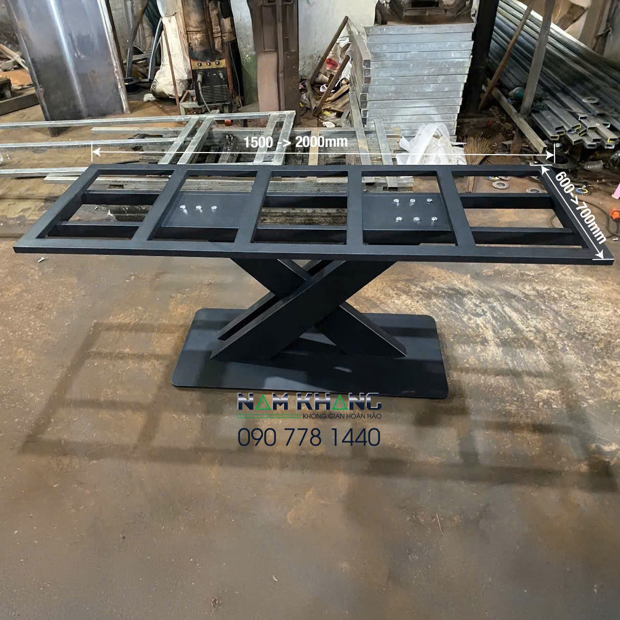 Chất liệu : chân bàn thép tấm 2 ly tạo hình, bệ đỡ sắt hộp 25x50 dày 1,2 ly