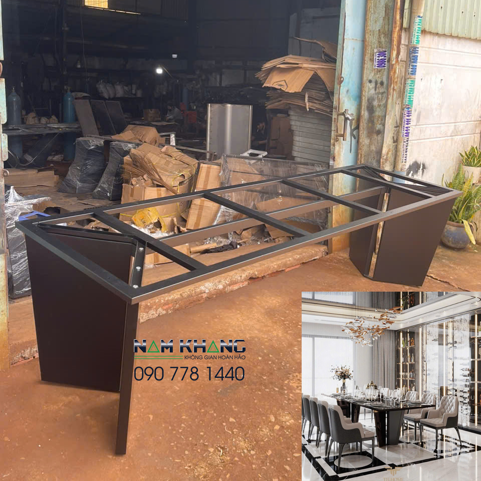 Chất liệu : Chân bàn thép tấm dày 2 ly tạo hình,bệ đỡ thép hộp 25x50 dày 1,2 ly