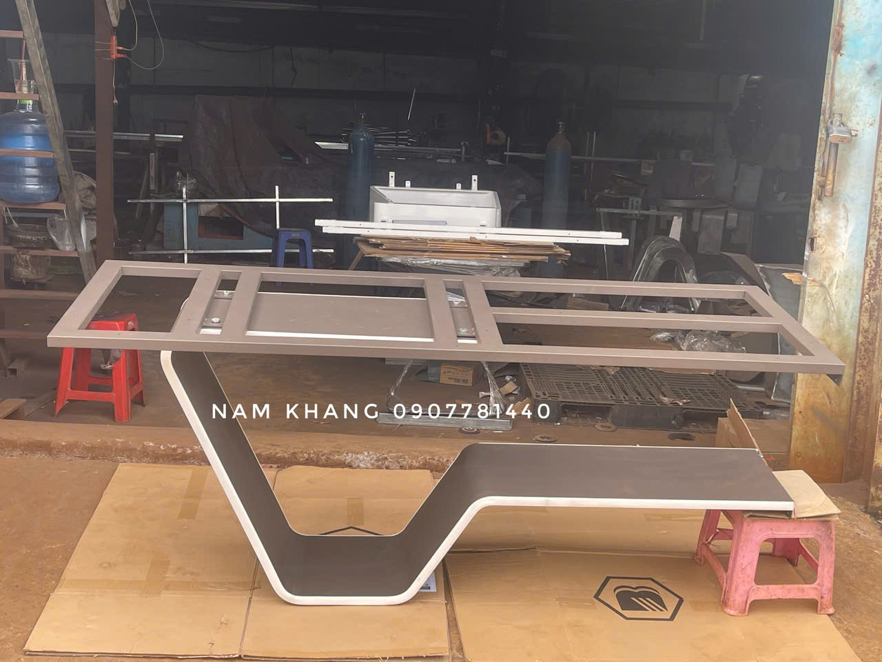 Chất liệu : chân bàn thép tấm 2 ly tạo hình, bệ đỡ sắt hộp 25x50 dày 1,2 ly