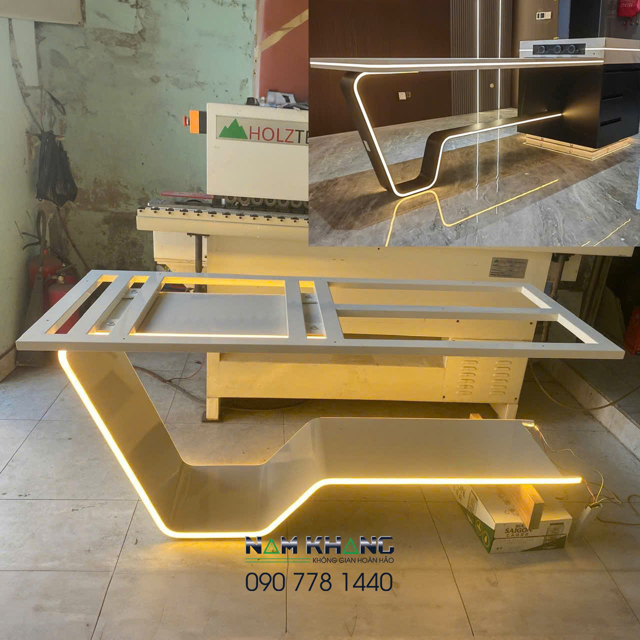 Chân bàn gắn led sẵn về đấu dây điện vô là dùng