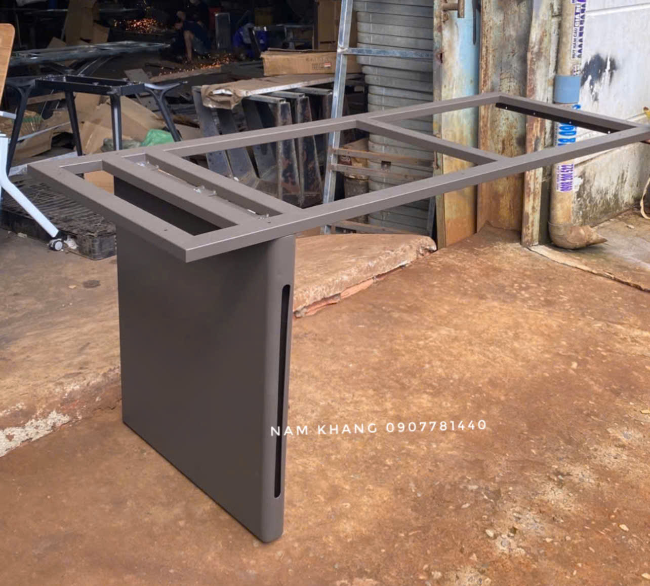 Chất liệu : chân bàn thép tấm 2 ly, bệ đỡ sắt hộp 25x50 dày 1,2 ly