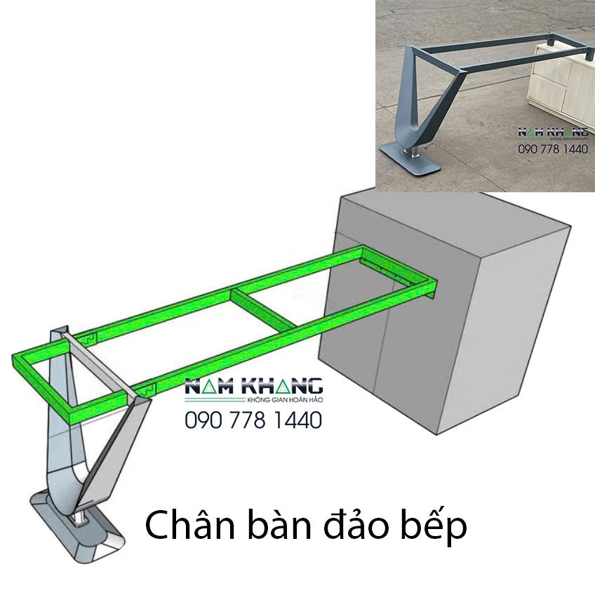 Chất liệu : chân bàn thép tấm 2 ly, bệ đỡ sắt hộp 25x50 dày 1,2 ly