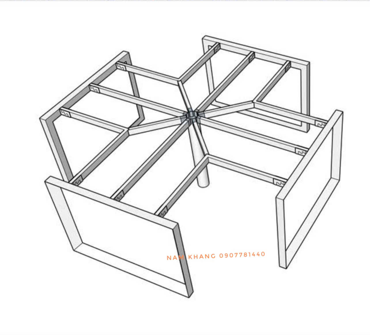 Chân bàn làm việc cụm 4 - cụm 6 - cụm 8 (1200x2400, 1400x2800 ,1200x3600 , 1400x4200 , 1200x4800,1400x5600)